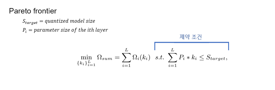 식은 미리 정해놓은 특정 모델 사이즈 이하의 모든 mixed precision 조합을 확인한다.