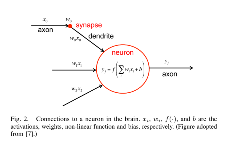 뉴런은 시그널이 입력되는 dendrite 수상돌기와, 시그널이 출력되는 axon 축삭돌기로 이루어진다.